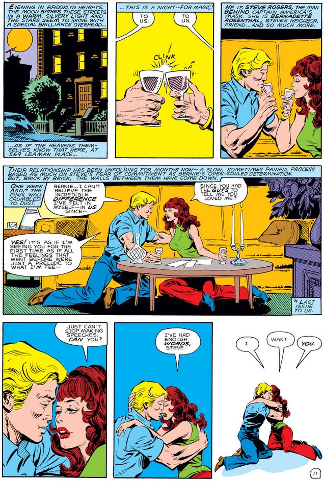 If Cap renewed his struggle with duty and love in the last issue, he seems to have reconciled it by now, having successfully compartmentalized his private life as Steve Rogers with his responsibilities at Captain America; as a result, he is able to fully live as each one when appropriate.
