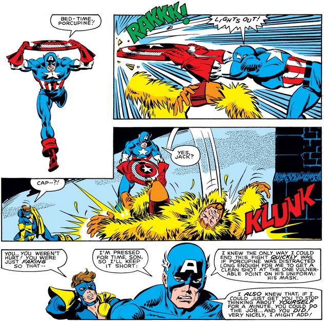 …and Cap is none too happy about that—or seeing Nomad in danger, for that matter. He lets Porcupine have a taste of his patented defiance before having to play a deadly game of catch.