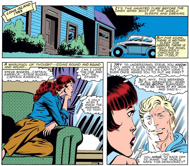 Speaking of the Rosenthals, why don’t we touch base with the one we know best, who is also wondering about her relationship with both Steve Rogers and Captain America.