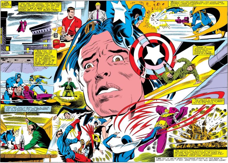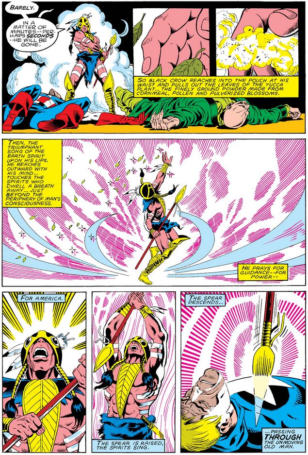On Black Crow’s prompting, it is Captain America’s faith in his country and the people who make it up that saves him, the spirit of the modern America reviving its living symbol.