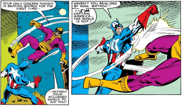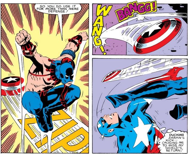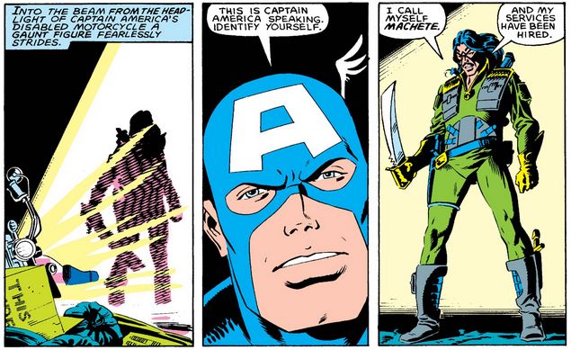 Once Cap gets the upper hand in their fight, Machete flees, only to reappear later with a pal, Zaran (both working for Batroc), to face Cap and Nomad (who, earlier, hints at going solo). Zaran manages to separate Cap from his shield…