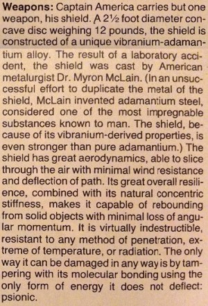 This was re-iterated in the separate entry on the shield in OHOTMU #15 (May 1984):