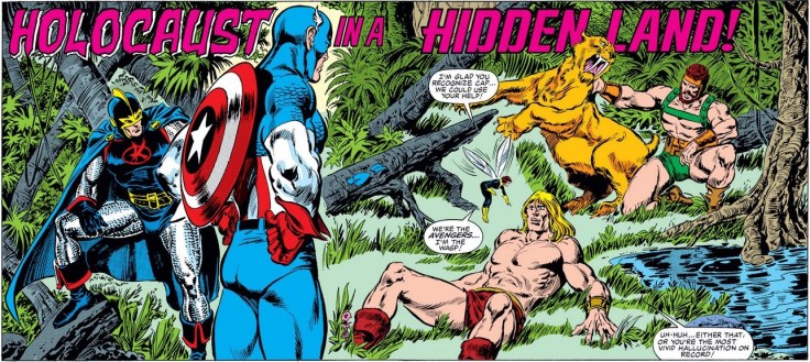 The Avengers, along with Ka-Zar and Shanna, fight Terminus, who destroys the Savage Land and ends thousands of lives before he is defeated (and revealed to actually be… well, you can see for yourself if you want).