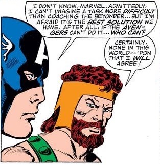 Cap turns into the most modest prosecutor ever—have some imagination, man!—while Captain Marvel makes a more pragmatic point, and the Wasp teaches the Beyonder the Code of the Avenger.