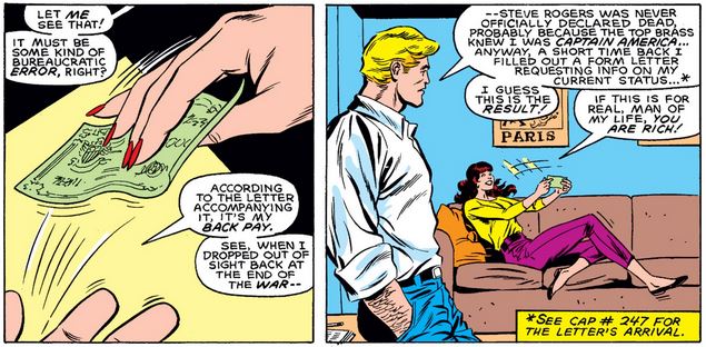 …which, like the government check, makes Cap uncomfortable, afraid that people might misunderstand what and who he stands for, both more important to him than anything about himself.