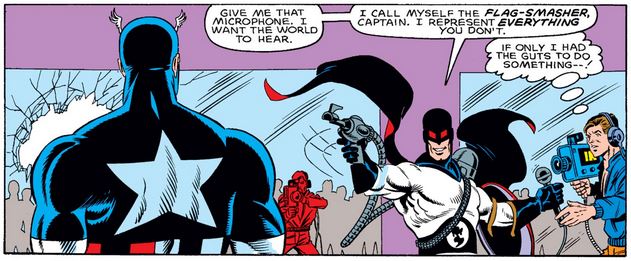 Flag-Smasher takes the floor, and again exaggerates the differences between himself and Cap.