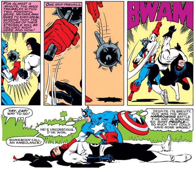 After a brief struggle, Cap gets hold of Flag-Smasher’s mace…