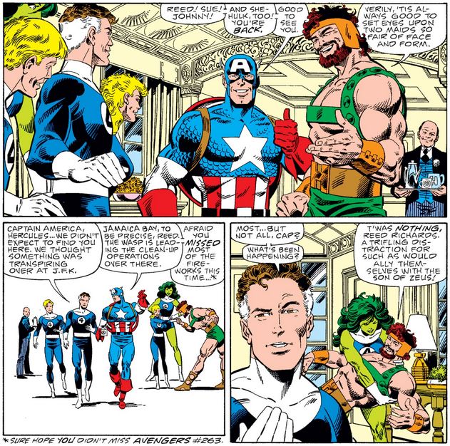 Cap and Hercules greet their old friends (including one former teammate) in their own particular ways before Cap brings Reed up to speed.