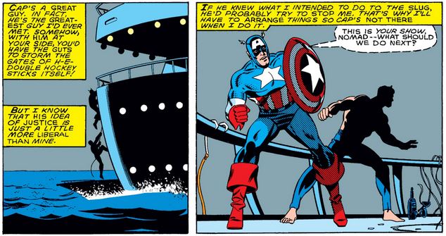 …and while Cap’s primarily concerned with getting Nomad off the ship before it explodes, he also has concerns with his friend’s version of justice, very different from Cap’s own, the incident in Switzerland notwithstanding.