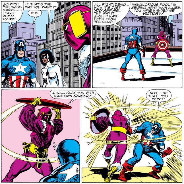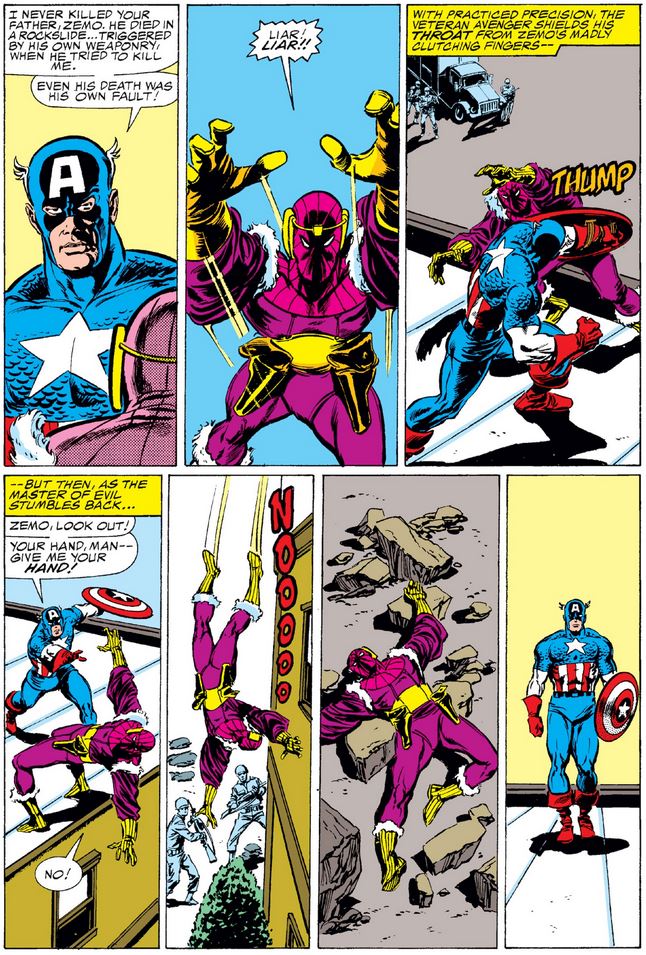 Cap’s defiance continues in issue #275, which he spends with Zemo in full taunting mode.