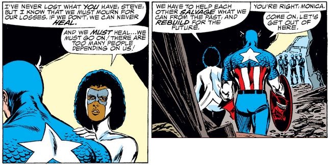 He feels foolish crying over “mere” things, such as the only existing picture of his mother, when the stakes of the battle were so much larger, but Captain Marvel reminds him that it’s OK to mourn the loss of such important pieces of his past…