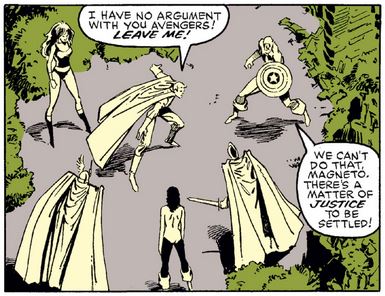 In the end, Magneto is surprised that neither of the other two judges objected, and wonders if du Motier was always going to render that judgment, with or without Magneto’s manipulation, just like Cap was unchanged by it earlier. I guess he’ll never know, which is one of the dangers of using mind control on people. (Perhaps Charles Xavier should’ve told him that.)