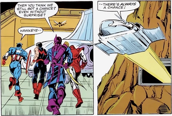 Maybe too quickly, actually, because while Cap is stressing the importance of surprising Doom, Hawkeye is nowhere to be found…