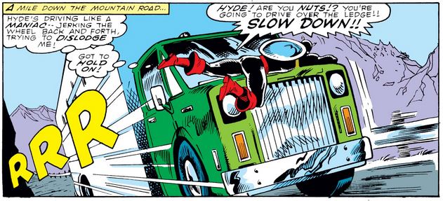 Let’s check in with Jack, who’s very slowly and carefully scaling down the side of a mountain after Vibro, self-proclaimed “master of seismographic force,” as they each try to knock the other loose… until Vibro makes an unforced error.