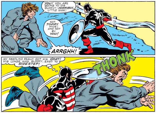 If you’re interested, in Batman and Ethics (pp. 144-147) I discuss how much Batman wants to kill the Joker although he never does, even saving his life on numerous occasions, much as Cap did with Hyde here. (And there’s a lot more history between Bats and the Clown.)