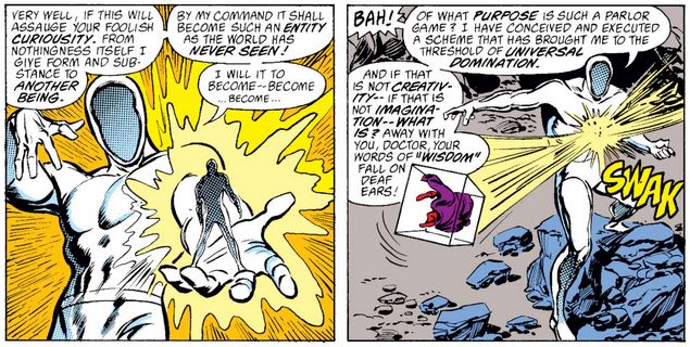 After rejecting the idea of facing him directly, for fear of the cataclysmic power that would be unleashed in such a battle—and after delivering a Cosmic-Cube-powered diss to Uatu the Watcher in the process—Kubik decides to recruit the one person it has met that could possibly face the Adaptoid Who Just Up and Decided to Call Himself Supreme…