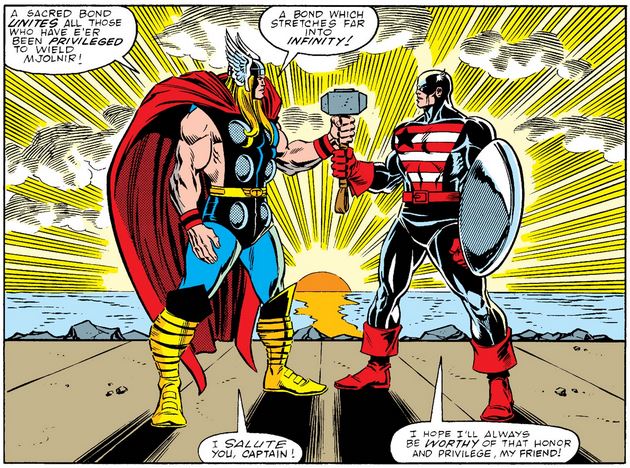 When all is said and done, Thor admits his earlier doubts to Cap, which were “quickly erased” after he lifted Mjolnir, proving his worth in the highest manner, based on being “pure of heart and noble of mind.”