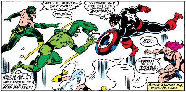 Cap/Gruenwald even remembers Slither from way back when.