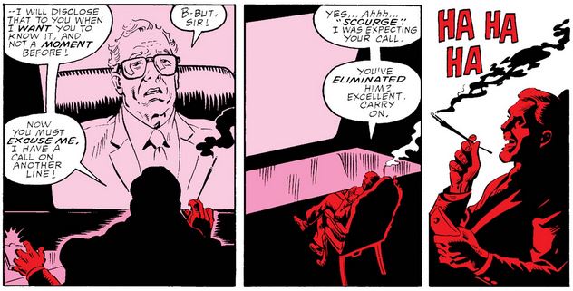 …his boss is more interested in a call from the Scourge, letting him know that “justice is served” as far as the 1950s Red Skull is concerned.