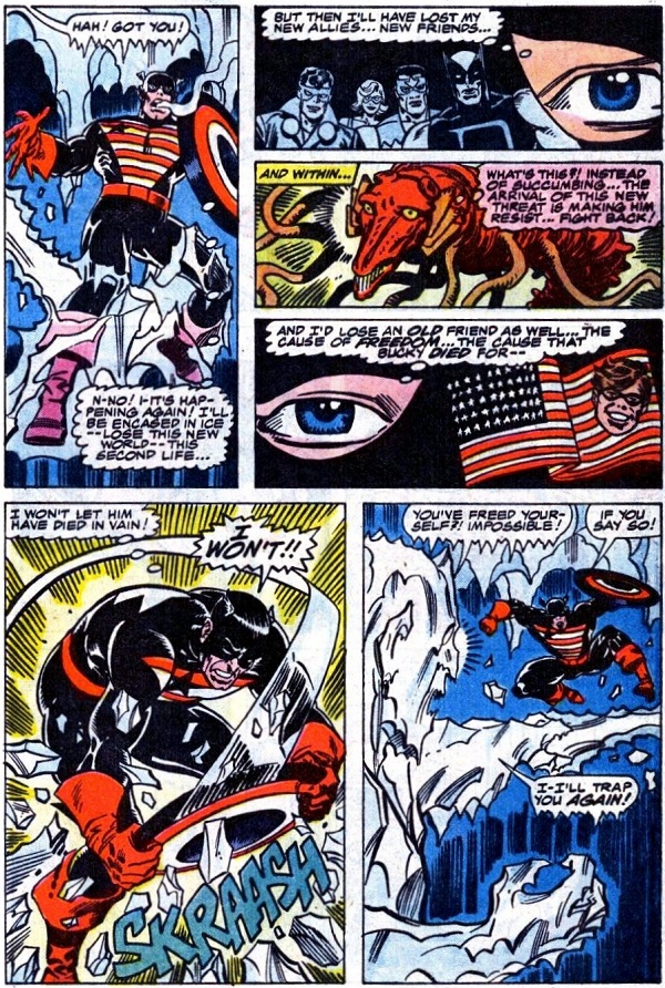 Cold War starts to encase Cap in ice again, and it isn’t his fear of the cold that drives him to free himself, but rather the fear that he will fail his friends and the cause he has sworn to serve.