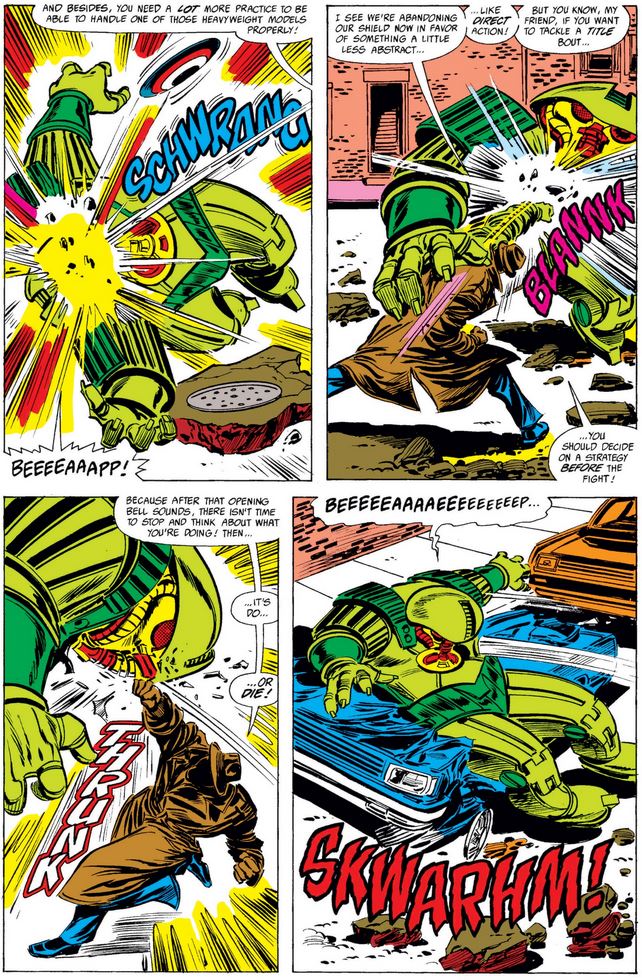 And he never misses a chance to give fighting lessons, even if they’re wasted on a Transformer Gobot Giant-Size Car-Thing.