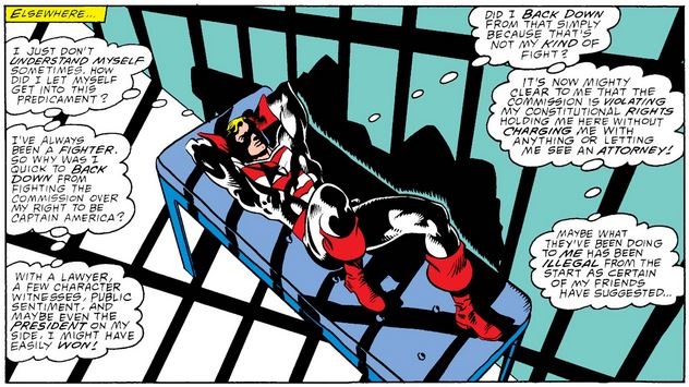 Before he’s cut loose, Cap continues his favorite pastime: self-reflection, wondering yet again why he didn’t resist the Commission more (or at all) when he had the chance