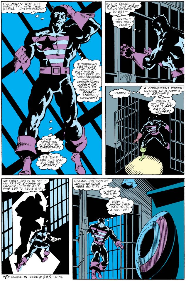 Of course, Rockwell doesn’t actually tell him he’s free to leave, so Cap thinks he’s escaping—which he seems OK with, now that he regards his detention as illegal, plus the fact that it enables him to check on D-Man.