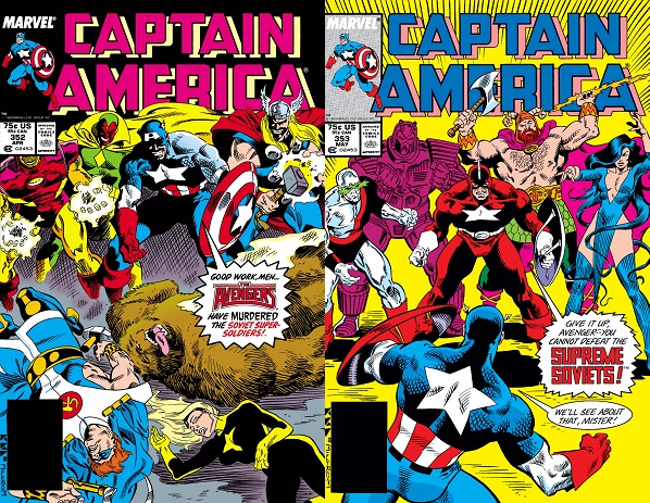 These two issues introduce a little (very little) bit of international intrigue as Captain America confronts opposed factions within the Soviet superhero world, including a trip behind the Iron Curtain (which would fall later that year) himself.