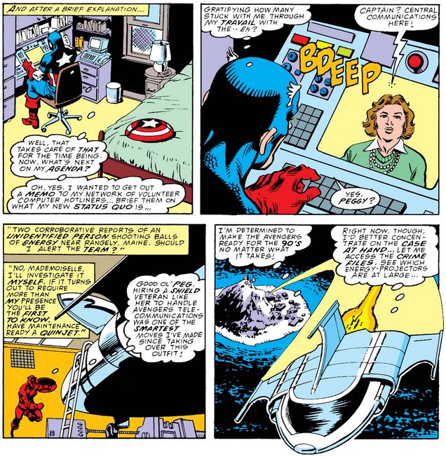 Next, Cap sits down to give an update to Ram Riddley and the rest of his Captain America hotline when an old girlfriend asks to Zoom, sending him on an emergency mission.