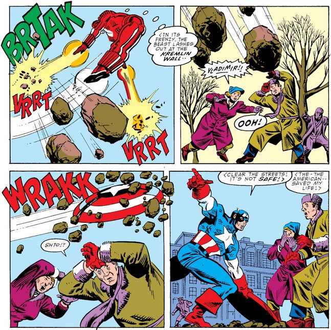 …but after the creature vanishes, leaving the Supreme Soviets weak but alive, we’ll never know if Cap’s argument worked, or if the Soviet Super-Soldiers just got what they needed without killing their comrades.