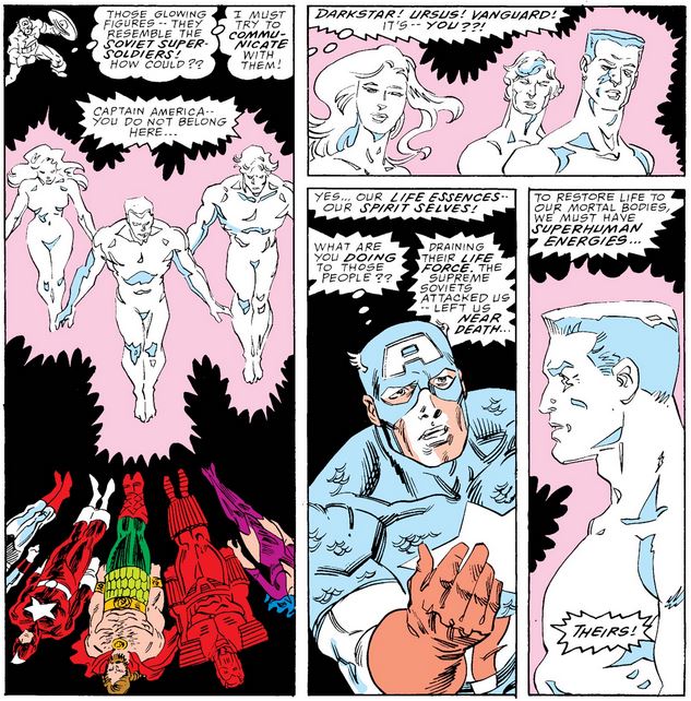 It’s the Soviet Super-Soldiers—Vanguard, Darkstar, and Ursa Major—whom we saw here in the X-Men Vs. Avengers miniseries…