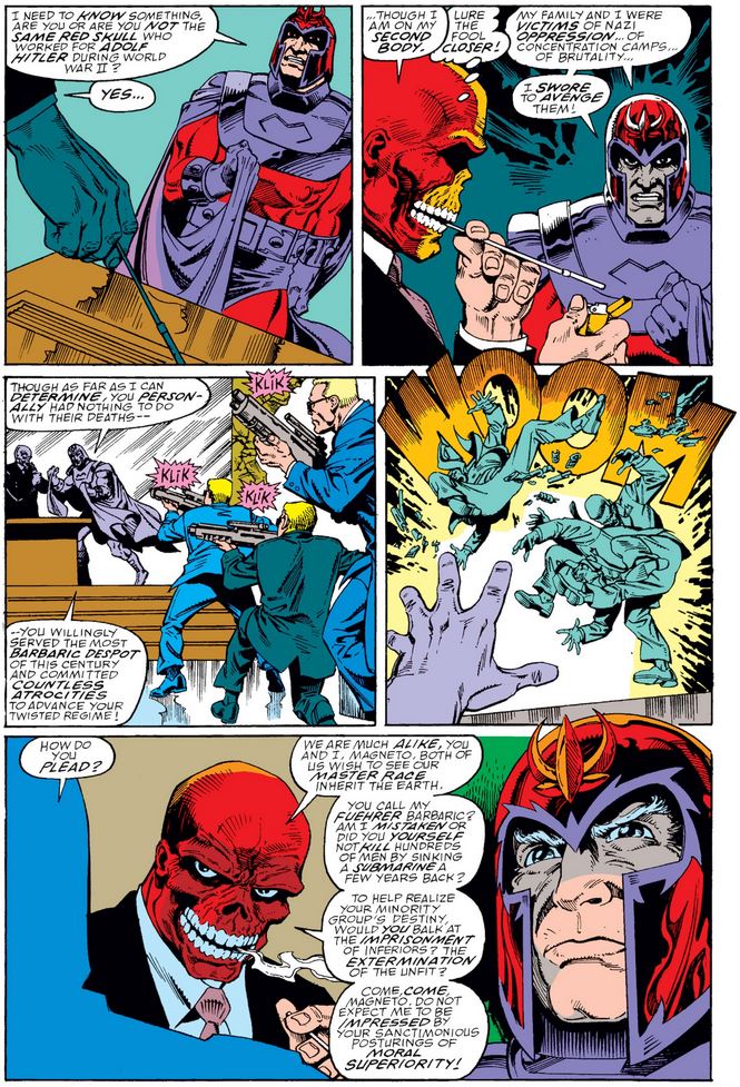 Settle down Sherlock, we know the answer from earlier in the issue: Magneto confronted the Red Skull about his Nazi past (and present), but the Skull threw Erik’s own actions in defense of mutants back at him, along with a version of the classic “we are not so different, you and I.”