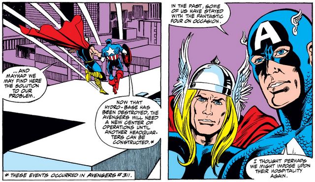 …to ask for temporary lodging, as the Avengers once provided the FF (long before Reed and Sue became Avengers themselves for a brief time).