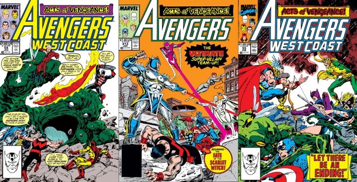 Both collected in Avengers West Coast Epic Collection: Darker Than Scarlet and Acts of Vengeance: Avengers