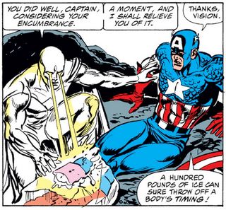 Nonetheless, he does appreciate the Vision’s quick thaw… to save him the inconvenience of adjusting his fighting style, of course.