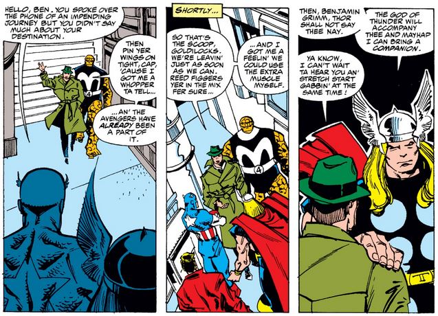 (Later in the issue we see a different view of what seems to be the fight between the Avengers and Freedom Force from Avengers #312.)