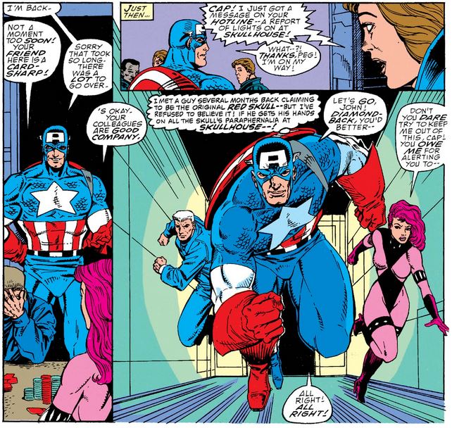 Captain America (vol. 1) #370, May 1990: Mark Gruenwald (writer), Ron Lim (pencils), Danny Bulanadi (inks), Steve Buccellato (colors), John Morelli (letters). (More details at Marvel Database.)