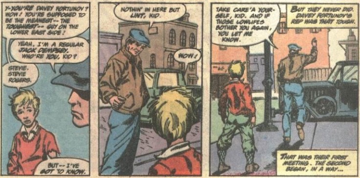 …starting with this one, when Steve—or Stevie—is getting harassed by some young toughs in his neighborhood for being artsy (an element of his background I always appreciate being referenced).