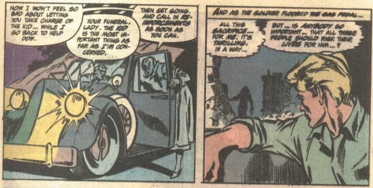 Sabbath goes back to help Dominic, leaving the soldier to protect Steve, whose thoughts shift from being surprised that he’s so important to everyone, to wondering if any one person should be held to be so important—an admirable expression of egalitarianism (and utilitarianism) that he would nonetheless go on to violate in the future, choosing on numerous occasions to “leave no man behind” regardless of the cost.