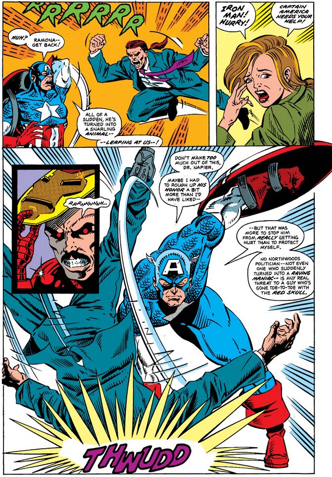 And when he does ask Tony for his opinion regarding the possession overtaking the locals, Cap instead finds himself having to protect Ramona from his fellow Avenger (with a bit of showy acrobatics).