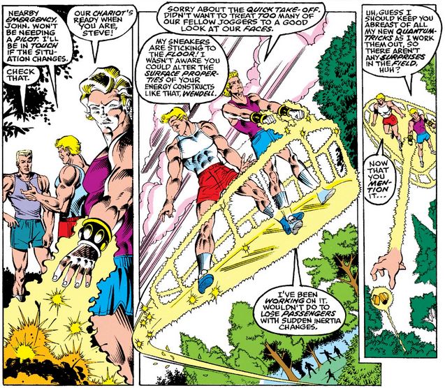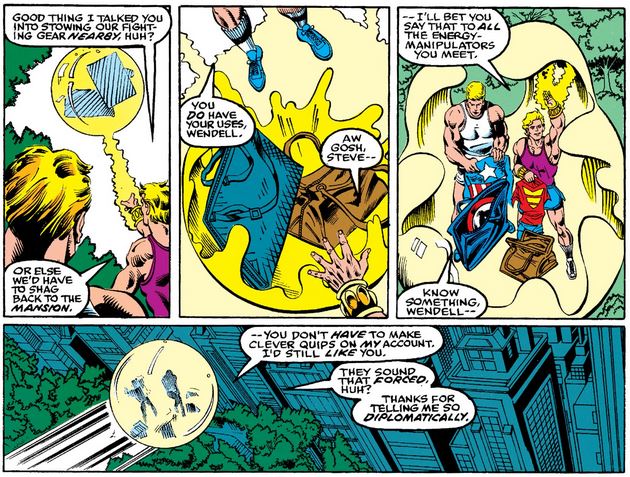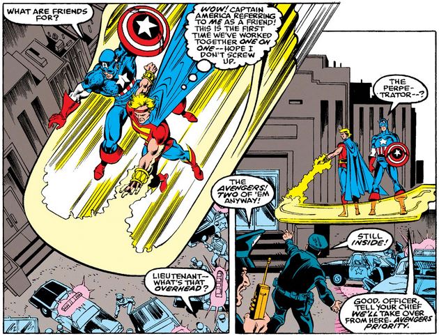 Cap is duly impressed by Quasar’s improving skill with his power ring quantum bands…