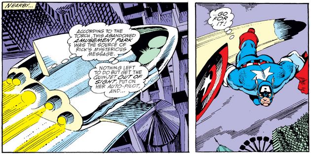 Whether it’s the skilled use of their powers, or the fact that they each know Rick, Cap and Torch figure out pretty quickly that the other is real, but it seems too late for Rick Jones.