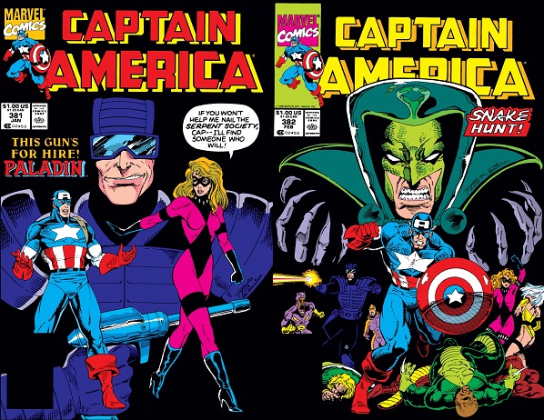 Captain America (vol. 1) #382, February 1991, “Why Does It Always Have to Be Snakes?”: Mark Gruenwald (writer), Ron Lim (pencils), Danny Bulanadi (inks), Steve Buccellato (colors), Joe Rosen (letters). More details at Marvel Database.