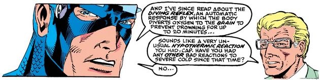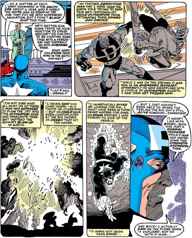 Thanks to the priming, Cap jumps to the conclusion that the figure in the ice could be D-Man, and even though Dr. Kincaid tries to tamper his expectations, Cap’s off to the races.
