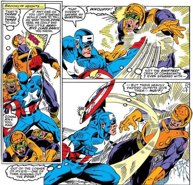 Back in Brooklyn, Cap continues to tangle with the ‘Dogs, who are no real threat…