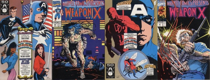 This is a very curious little story, not least because it is, as far as I know, the only Captain America solo story written and drawn by none other than Steve Ditko. As you see from the covers above (front and back), the main stories from these two issues were part of “Weapon X,” the story written and drawn by Barry Windsor-Smith that established how Logan had adamantium applied to his bones. What does this have to do with Captain America? In Grant Morrison’s run as writer of New X-Men, they revealed that the “X” in Weapon X stands for ten, and that Weapon I referred to Project Rebirth, the process that created… well, you know.