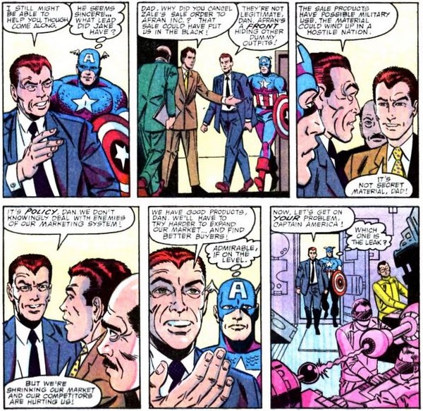 Cap is witness to a father-son disagreement between the Revers at Able Electronics about business practices, with the son Dan more desperate for a sale than his father Brad is, even if it means trading with a “hostile nation”…