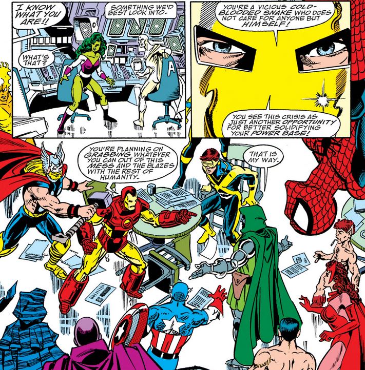 Cap steps in, as much to calm down Iron Man as to tell Doom he may be more trouble than he’s worth.