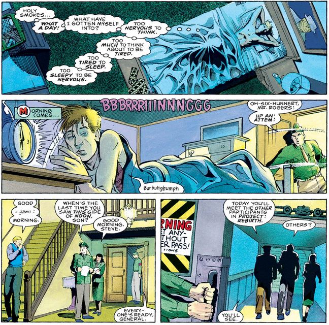 Of course, Steve is anxious about what he has agreed to, and on the first day, he is introduced to Project Rebirth…