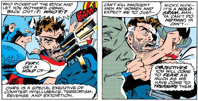 …and Cap has to hold back the same friend for losing control at a floating symbol (as hateful as it is).